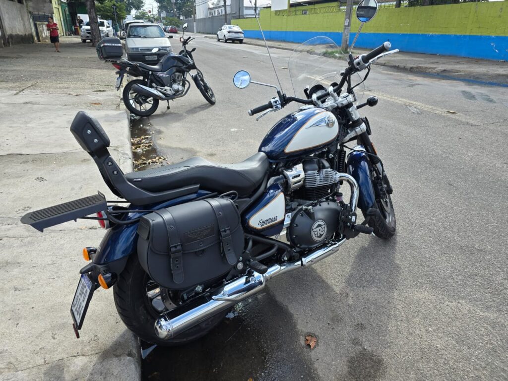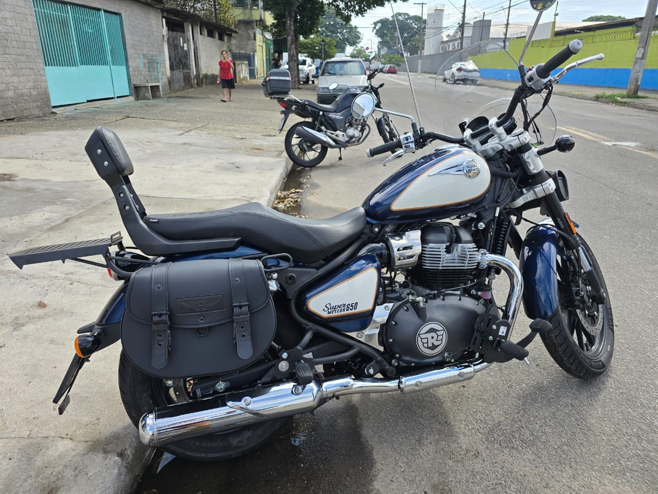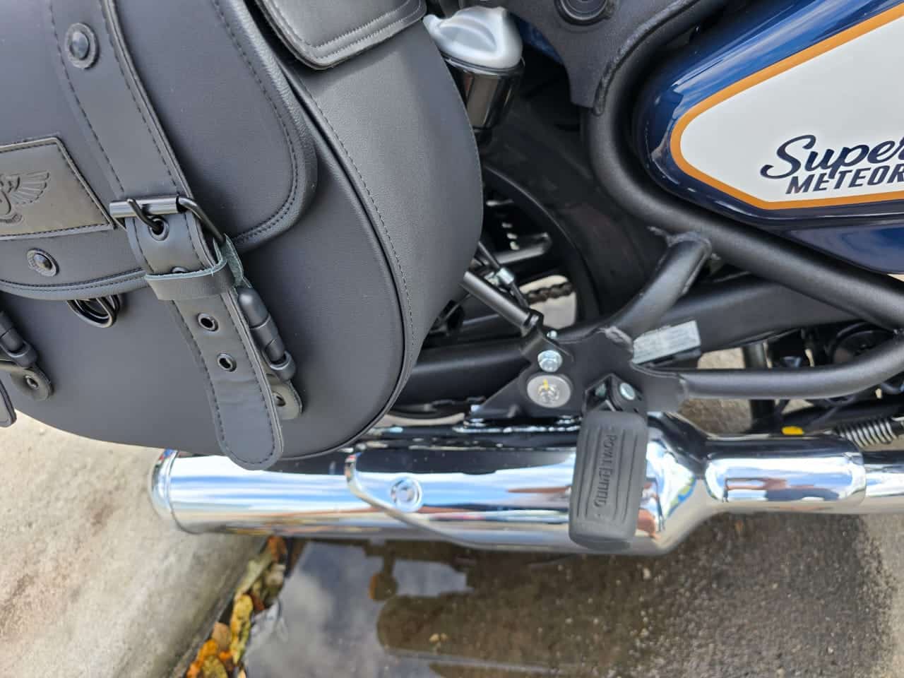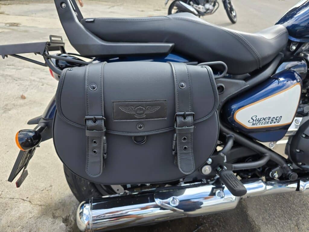 O design oval aliado às dimensões de 40 cm de comprimento, 30 cm de altura e 15 cm de largura proporciona um encaixe harmonioso na Super Meteor 650 .