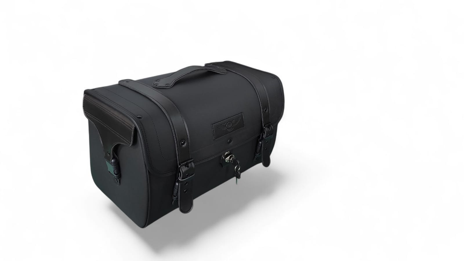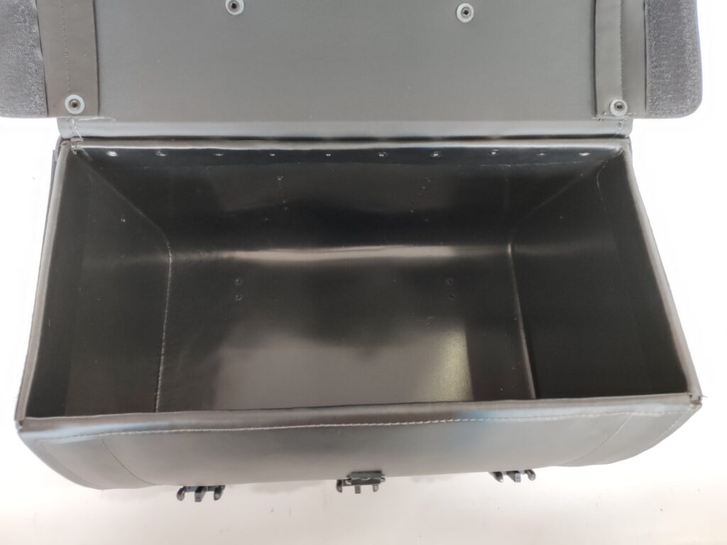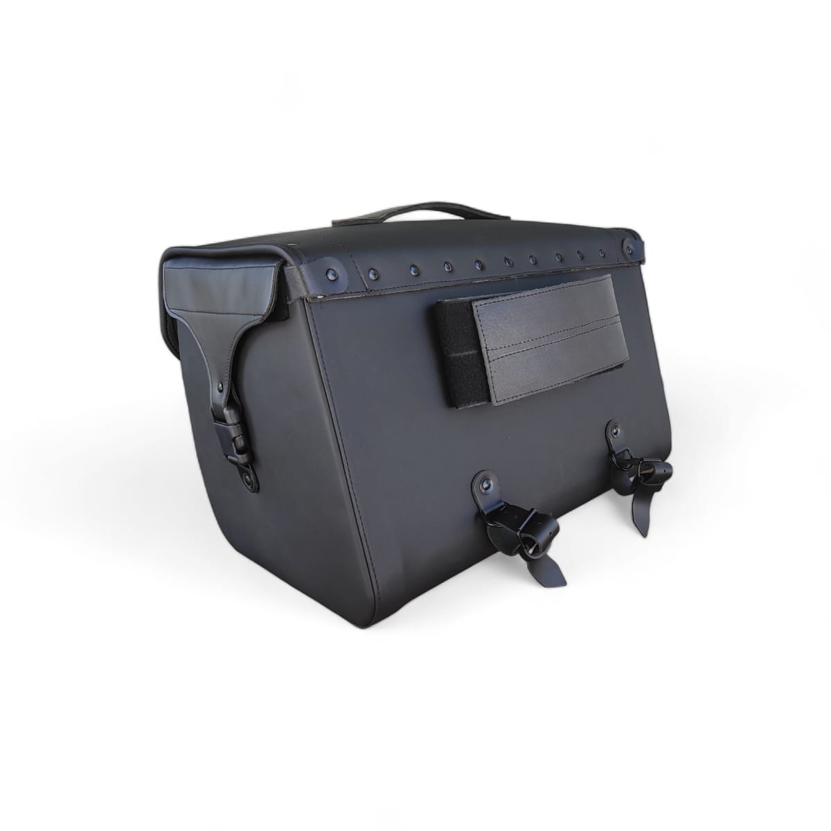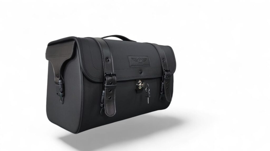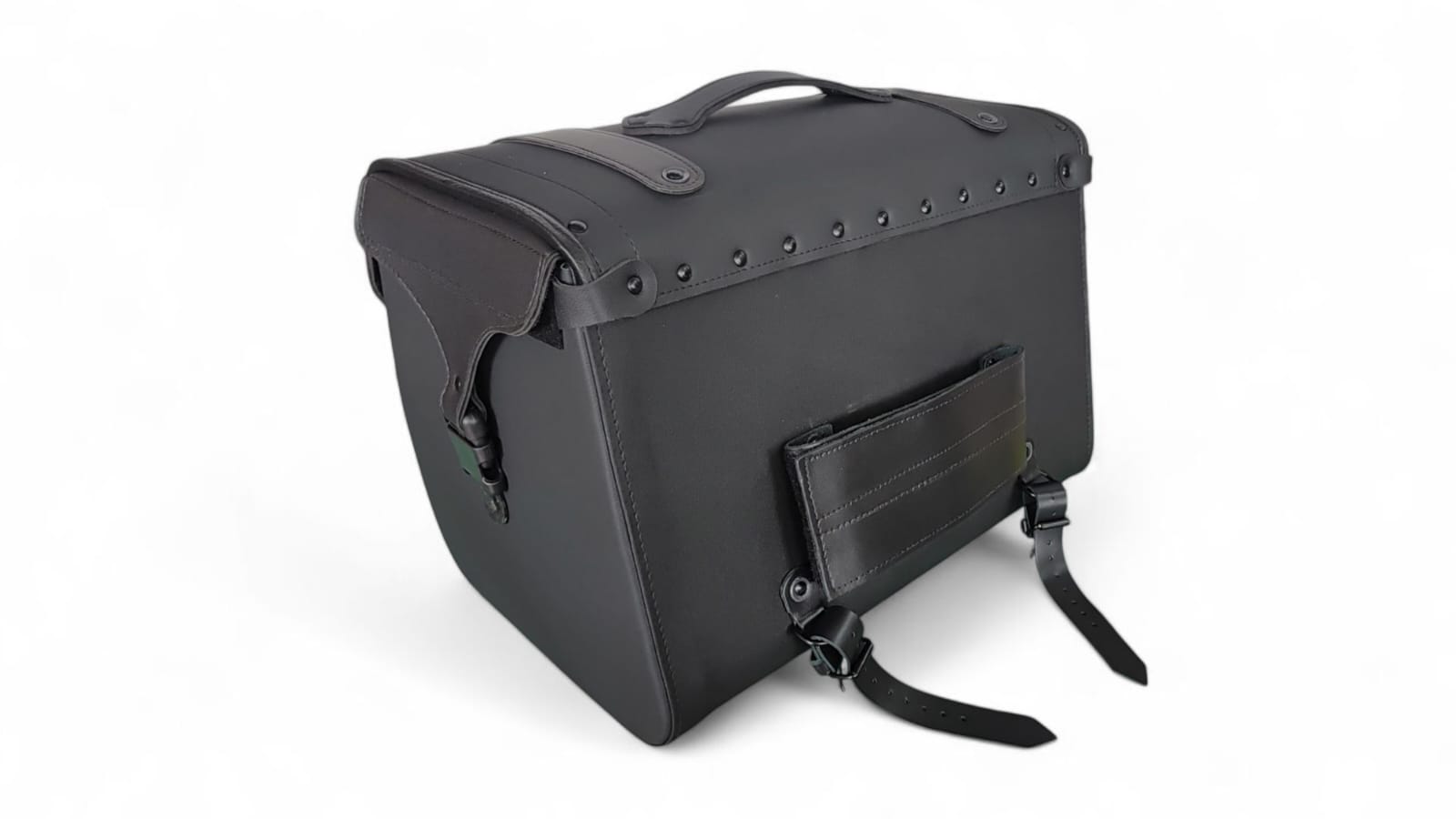 - Construção: Caixa interna rígida em polietileno de 4mm, revestida com material sintético premium. Reforços em couro legítimo nas correias e cantos, com detalhes rebitados.